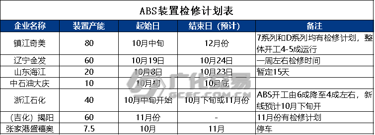 10月1日起提高所有聚苯乙烯(PS)、ABS和SAN等级产品价格,具体涨幅如下: